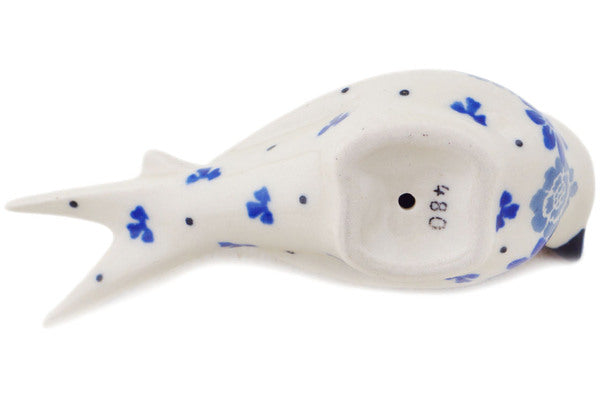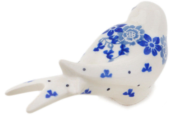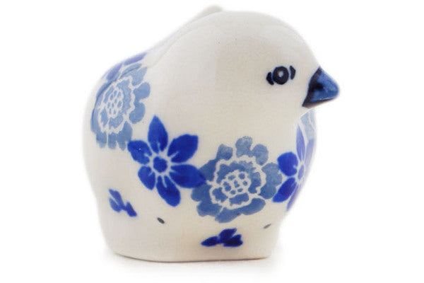 This Polish pottery Bird Figurine is made by Ceramika Artystyczna workshop in Boleslawiec, Poland. Manufacturer item number H0361Q. It is 1¾" high and measures 4" by 1½". The weight of this Bird Figurine is 0.1 lbs. The pattern was designed by artist Maria Starzyk. It is part of the Blue Country Field Collection.