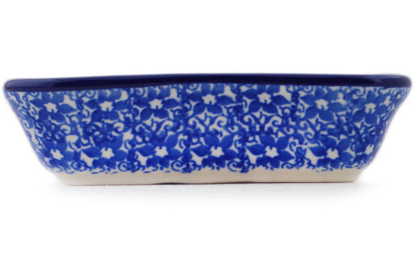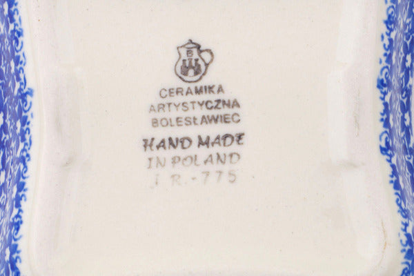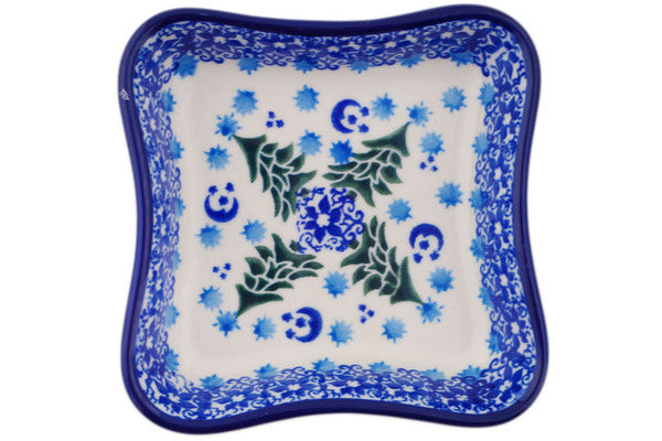 This Polish pottery Bowl is made by Ceramika Artystyczna workshop in Boleslawiec, Poland. Manufacturer item number H5265Q. It is 1¼" high and measures 4½" by 4½". The weight of this Bowl is 0.5 lbs. It is part of the Evergreen Night Collection.