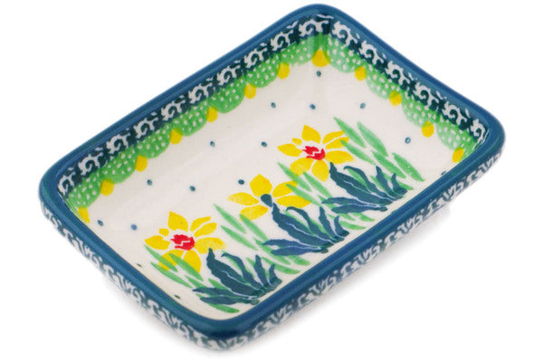 This Polish pottery Condiment Dish is made by Ceramika Artystyczna workshop in Boleslawiec, Poland. Manufacturer item number H6509Q. It is ¾" high and measures 3¾" by 2¾". The weight of this Condiment Dish is 0.2 lbs. It is part of the Summer Meadow Collection.