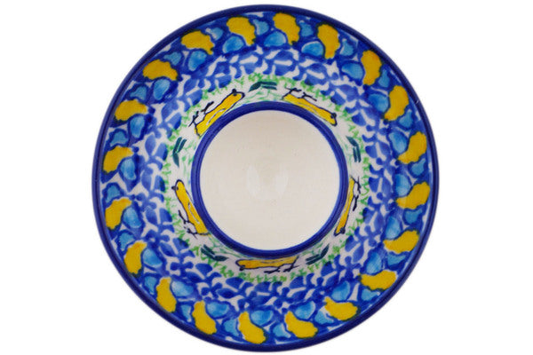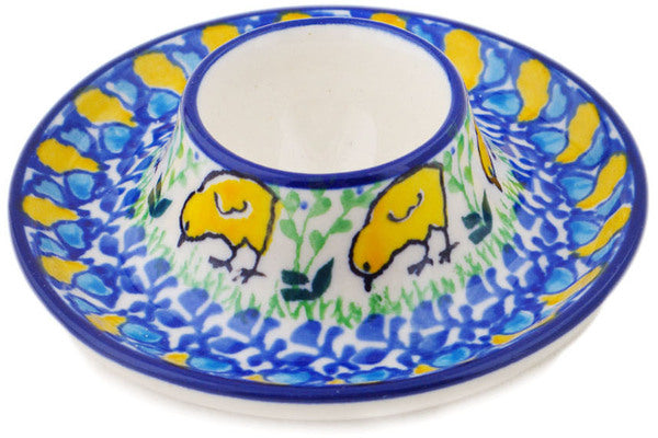 This Polish pottery Egg Holder is made by Ceramika Artystyczna workshop in Boleslawiec, Poland. Manufacturer item number H9188Q. It is 1½" high and measures 4" by 4". The weight of this Egg Holder is 0.3 lbs. It is part of the Hatched Collection.