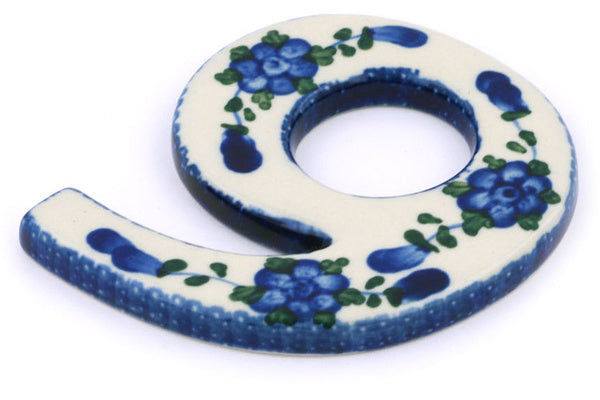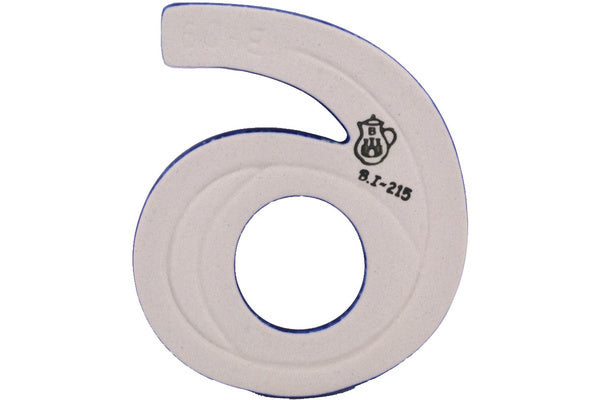 This Polish pottery Number is made by Ceramika Artystyczna workshop in Boleslawiec, Poland. Manufacturer item number H0272G. It is ¼" high and measures 4" by 3¼". The weight of this Number is 0.2 lbs. The pattern was designed by artist Jolanta Okraska. It is part of the Blue Poppies Collection.