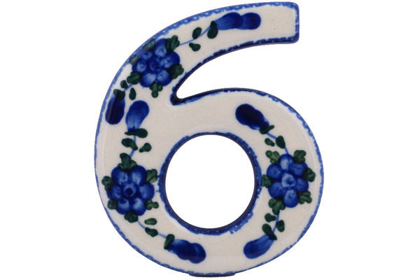 Polish Pottery 4-inch House Number SIX (6) Blue Poppies