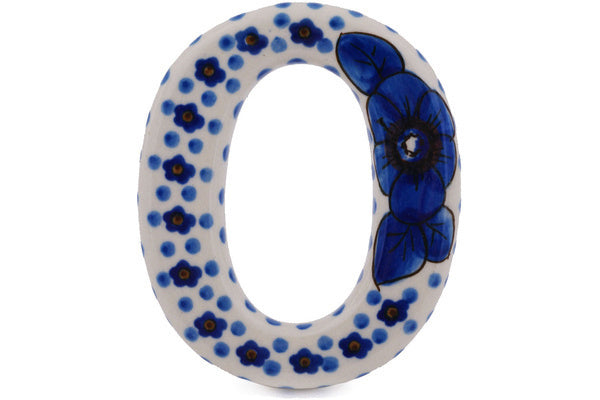 This Polish pottery Number is made by Ceramika Artystyczna workshop in Boleslawiec, Poland. Manufacturer item number H6736G. It is ¼" high and measures 4" by 3¼". The weight of this Number is 0.2 lbs. The pattern was designed by artist Jacek Chyla. It is part of the Cobalt Poppies Collection.
