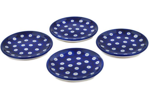 Polish Pottery 4-inch Set of 4 Coasters Blue Eyes
