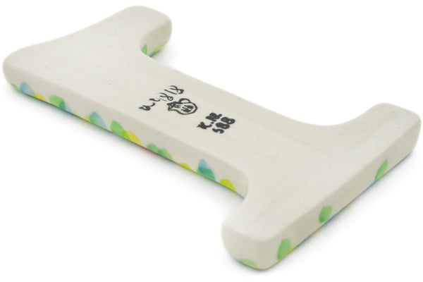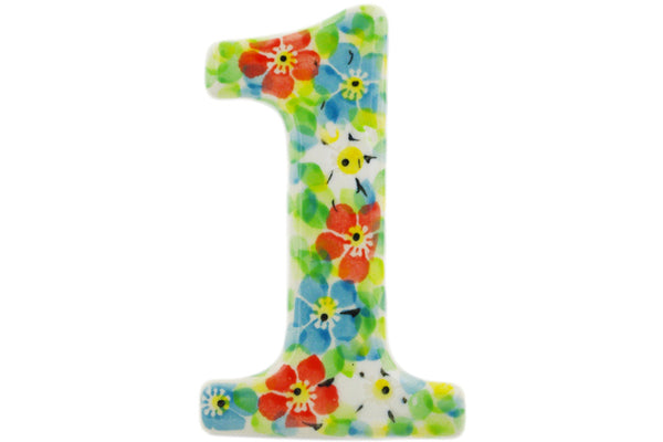This Polish pottery Number is made by Ceramika Artystyczna workshop in Boleslawiec, Poland. Manufacturer item number H8666J. It is ¼" high and measures 4" by 2¼". The weight of this Number is 0.1 lbs. The pattern was designed by artist Teresa Liana. It is part of the Colorful Dizziness Collection.