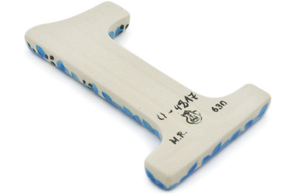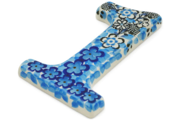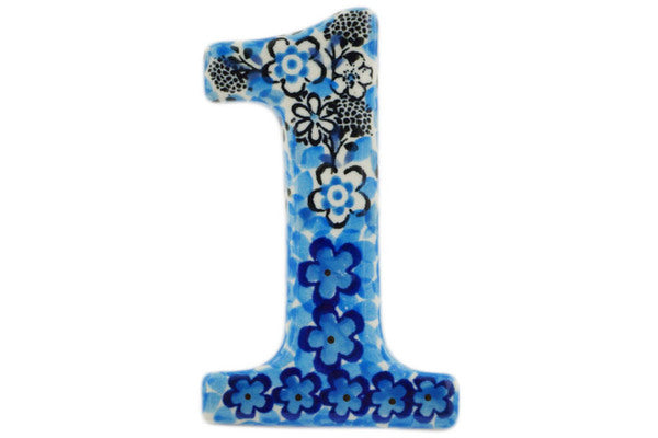 This Polish pottery Number is made by Ceramika Artystyczna workshop in Boleslawiec, Poland. Manufacturer item number H8665J. It is ¼" high and measures 4" by 2¼". The weight of this Number is 0.1 lbs. The pattern was designed by artist Teresa Liana. It is part of the Out Of Blue Collection.