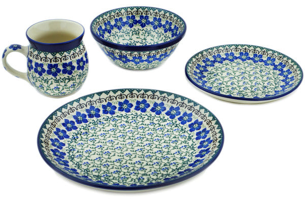 Polish Pottery 4-Piece Place Setting Blue Dogwood