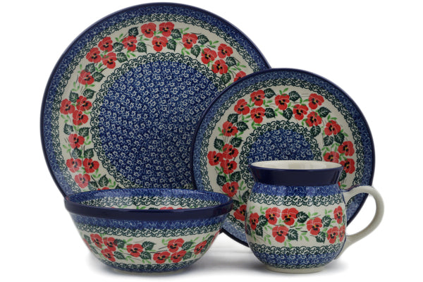Polish Pottery 4-Piece Place Setting Delicate Red Flowers