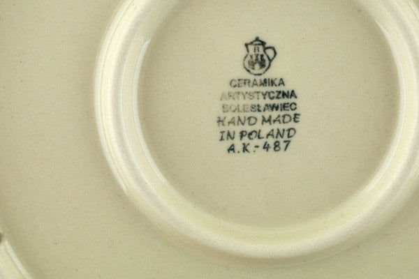 This Polish pottery Place Setting is made by Ceramika Artystyczna workshop in Boleslawiec, Poland. Manufacturer item number H5334I. It is 4" high and measures 10½" by 10½". The capacity of this Place Setting is 24.0 oz when filled to rim and it weighs 5.5 lbs. The pattern was designed by artist Maria Ciszewska. It is part of the Water Tulip Collection.