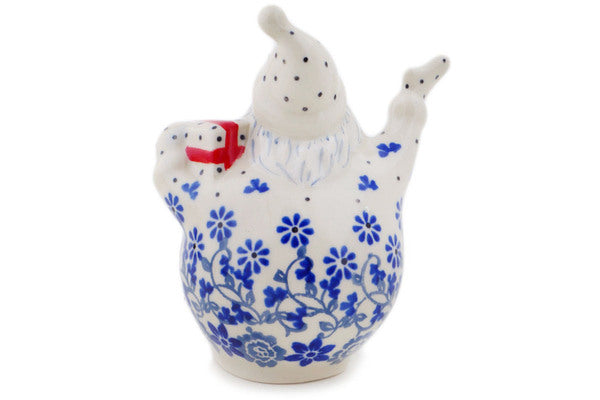 This Polish pottery Santa Claus Figurine is made by Ceramika Artystyczna workshop in Boleslawiec, Poland. Manufacturer item number H0370Q. It is 4" high and measures 3½" by 2¾". The weight of this Santa Claus Figurine is 0.3 lbs. The pattern was designed by artist Maria Starzyk. It is part of the Blue Country Field Collection.