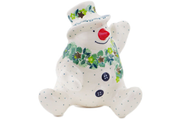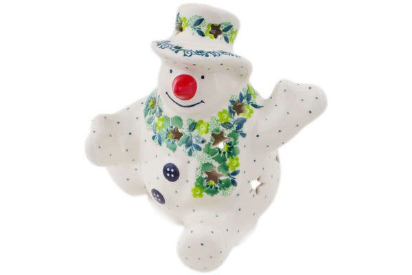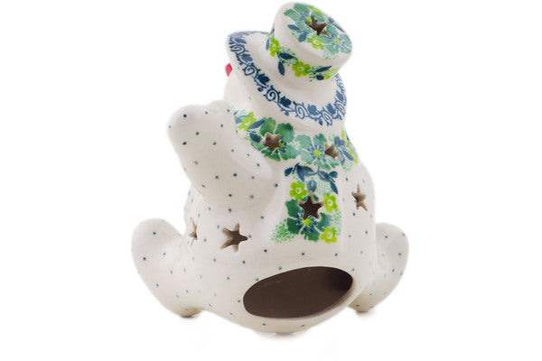 This Polish pottery Snowman Candle Holder is made by Ceramika Artystyczna workshop in Boleslawiec, Poland. Manufacturer item number H0489Q. It is 4½" high and measures 2¾" by 2½". The weight of this Snowman Candle Holder is 0.3 lbs. The pattern was designed by artist Maria Starzyk. It is part of the Envy Collection.