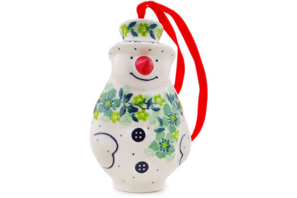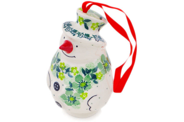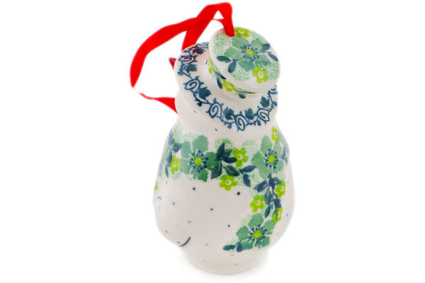 This Polish pottery Snowman Ornament is made by Ceramika Artystyczna workshop in Boleslawiec, Poland. Manufacturer item number H0488Q. It is 4½" high and measures 2½" by 2½". The weight of this Snowman Ornament is 0.3 lbs. The pattern was designed by artist Maria Starzyk. It is part of the Envy Collection.