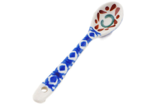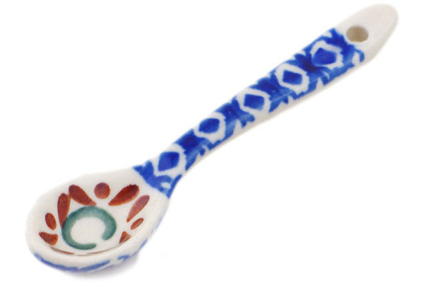 This Polish pottery Spoon is made by Ceramika Artystyczna workshop in Boleslawiec, Poland. Manufacturer item number H8661H. It is ½" high and measures 4" by ¾". The weight of this Spoon is 0.0 lbs. The pattern was designed by artist Anna Pasierbiewicz. It is part of the Morning Sunrise Collection.