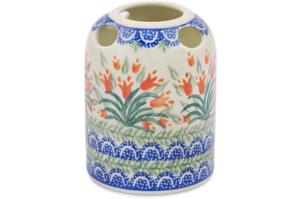 Polish Pottery 4" Toothbrush Holder Crimson Bells