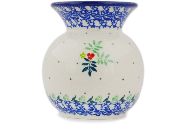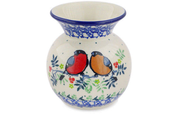 This Polish pottery Vase is made by Ceramika Artystyczna workshop in Boleslawiec, Poland. Manufacturer item number H1660R. It is 4¼" high and measures 4" by 4". The weight of this Vase is 0.7 lbs. It is part of the Robin & Wren Collection.