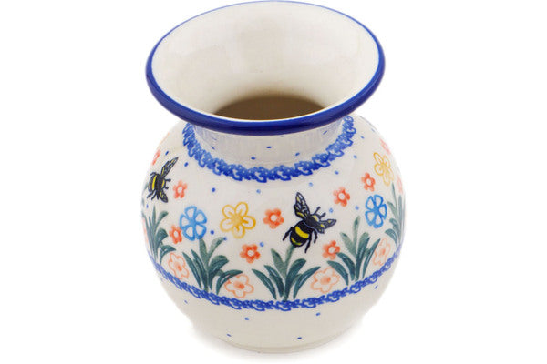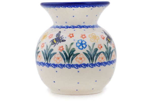 This Polish pottery Vase is made by Ceramika Artystyczna workshop in Boleslawiec, Poland. Manufacturer item number H5921Q. It is 4¼" high and measures 4" by 4". The weight of this Vase is 0.7 lbs. It is part of the Spring Bee Collection.