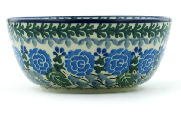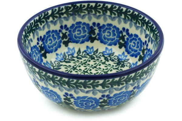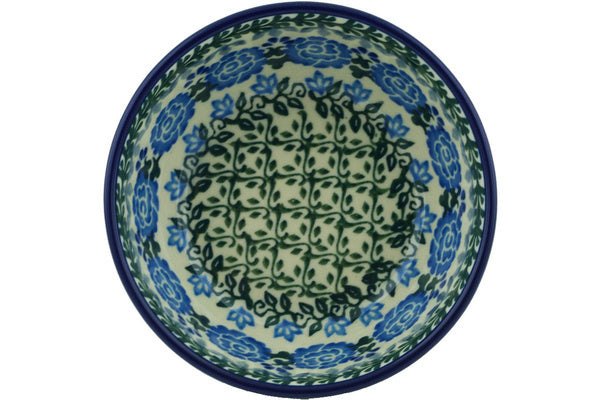 Polish Pottery 5" Bowl Blue Rose Trellis UNIKAT