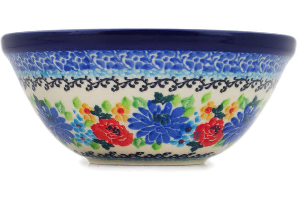 This Polish pottery Bowl is made by Ceramika Artystyczna workshop in Boleslawiec, Poland. Manufacturer item number H7757P. It is 2¼" high and measures 5½" by 5½". The capacity of this Bowl is 12.7 oz when filled to rim and it weighs 0.7 lbs. It is part of the Floweret Collection.