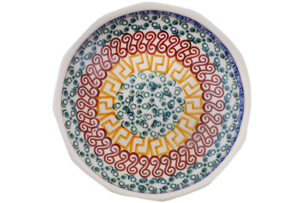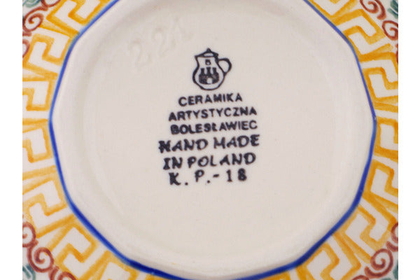 This Polish pottery Bowl is made by Ceramika Artystyczna workshop in Boleslawiec, Poland. Manufacturer item number H4945Q. It is 1¾" high and measures 5" by 5". The weight of this Bowl is 0.6 lbs. The pattern was designed by artist Maria Iwicka. It is part of the Grecian Sea Collection.