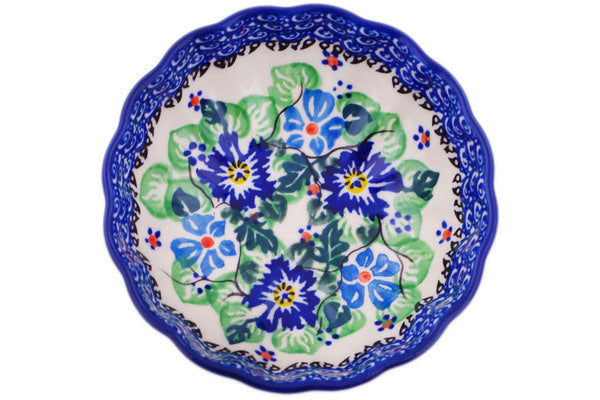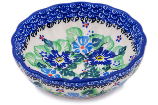Polish Pottery 5" Scalloped Fluted Bowl Morning Glory Wreath UNIKAT