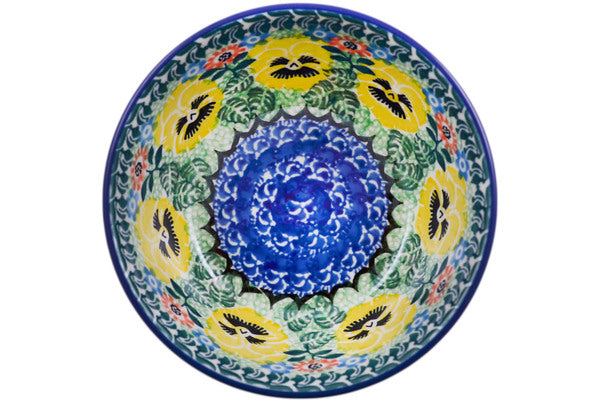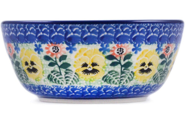 Polish Pottery 5" Bowl Pansies Field UNIKAT