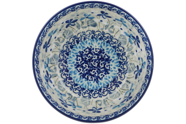 This Polish pottery Bowl is made by Ceramika Artystyczna workshop in Boleslawiec, Poland. Manufacturer item number H0110L. It is 2" high and measures 4¾" by 4¾". The capacity of this Bowl is 11.8 oz when filled to rim and it weighs 0.6 lbs. The pattern was designed by artist TERESA LIANA. It is part of the Stormy Blooms Collection.