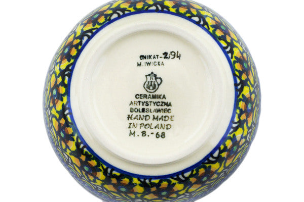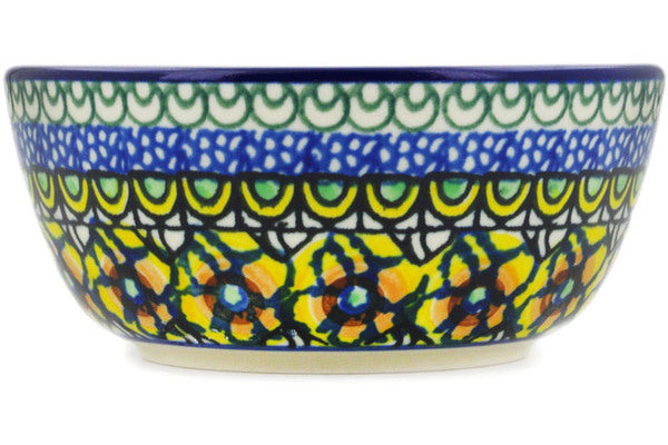 This Polish pottery Bowl is made by Ceramika Artystyczna workshop in Boleslawiec, Poland. Manufacturer item number H2407L. It is 2" high and measures 4¾" by 4¾". The capacity of this Bowl is 11.8 oz when filled to rim and it weighs 0.6 lbs. The pattern was designed by artist Maria Iwicka. It is part of the Turkish Flowers Collection.