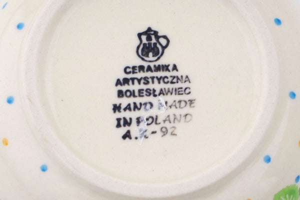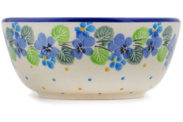 This Polish pottery Bowl is made by Ceramika Artystyczna workshop in Boleslawiec, Poland. Manufacturer item number H6184Q. It is 2" high and measures 4¾" by 4¾". The capacity of this Bowl is 11.8 oz when filled to rim and it weighs 0.6 lbs. It is part of the Waterfall Blooms Collection.