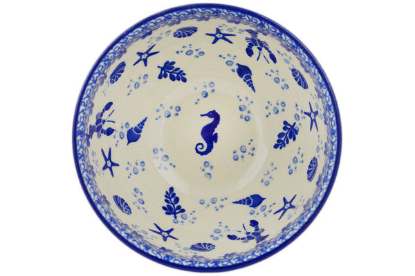 Polish Pottery 5" Bowl with Pedestal Marine Life