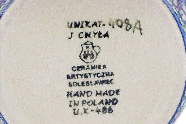 This is a Polish pottery Unikat (Signature) Carafe, which means that it has been hand painted with both sponges and brushes and it is signed by the artist who painted it. Unikat pieces are the most intricate works of art. Larger Unikat items take hours of very careful work to finish.