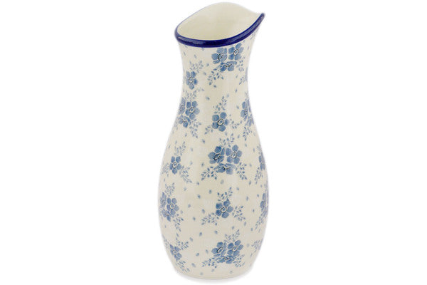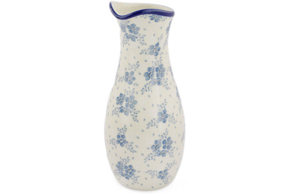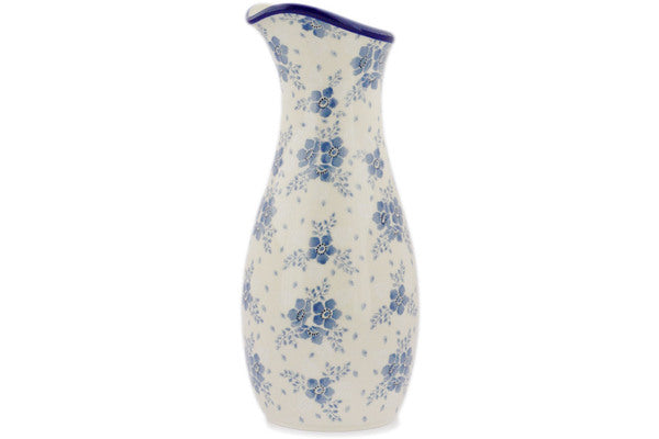 This Polish pottery Carafe is made by Ceramika Artystyczna workshop in Boleslawiec, Poland. Manufacturer item number H6255Q. It is 10½" high and measures 4½" by 3¾". The capacity of this Carafe is 43.8 oz when filled to rim and it weighs 1.9 lbs. It is part of the Rain Clouds Collection.