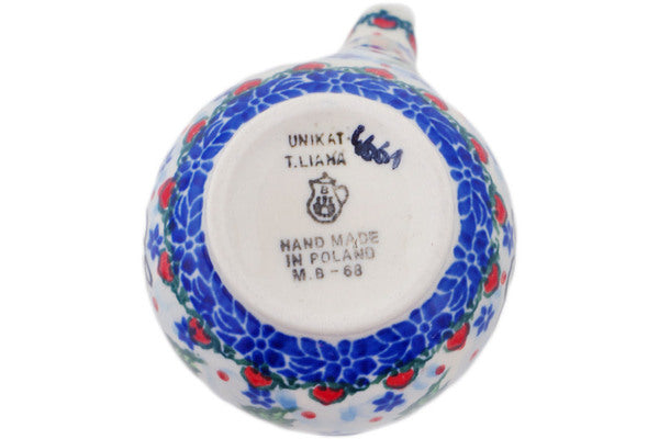This is a Polish pottery Unikat (Signature) Creamer with Lid, which means that it has been hand painted with both sponges and brushes and it is signed by the artist who painted it. Unikat pieces are the most intricate works of art. Larger Unikat items take hours of very careful work to finish.