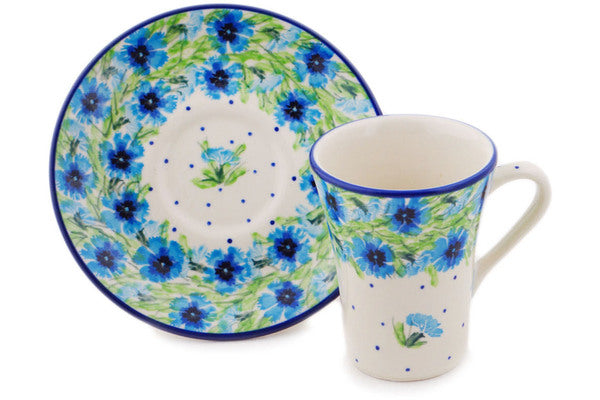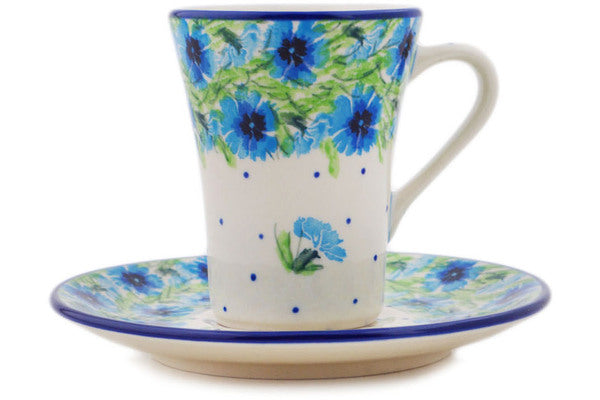 Polish Pottery 5 oz Cup with Saucer Springing Into Spring UNIKAT