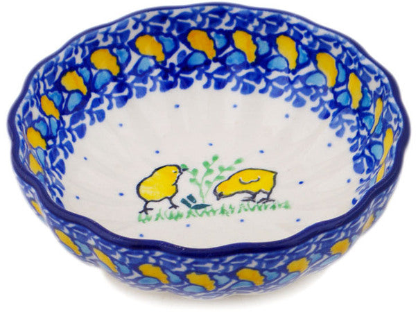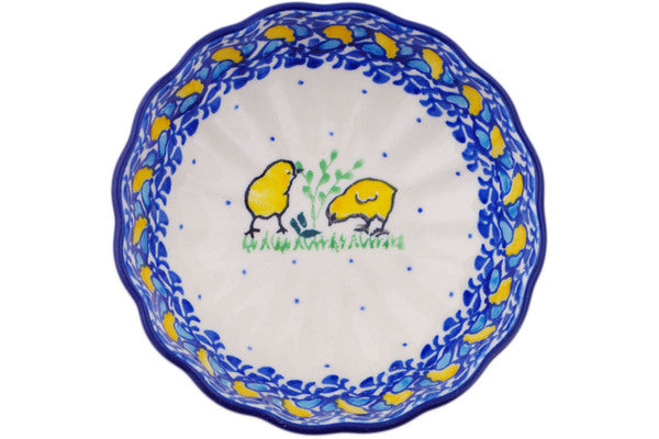Polish Pottery 5" Scalloped Fluted Bowl Hatched