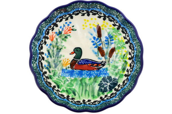 Polish Pottery 5" Scalloped Fluted Bowl Mallard Meadow UNIKAT