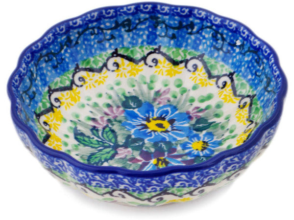 Polish Pottery 5" Scalloped Fluted Bowl Summer Garden UNIKAT