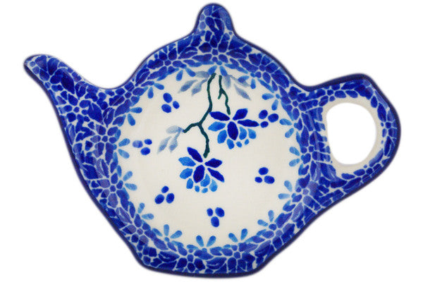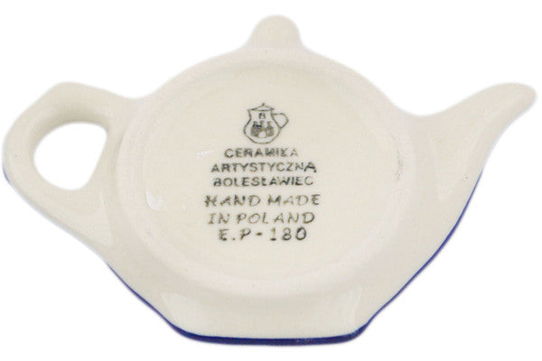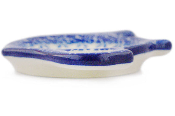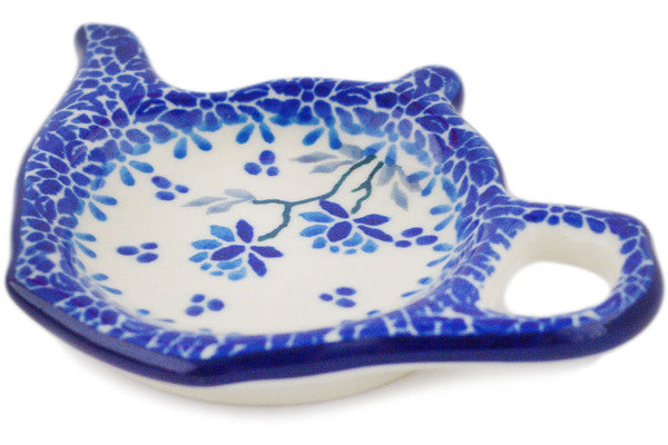 This Polish pottery Tea Bag or Lemon Plate is made by Ceramika Artystyczna workshop in Boleslawiec, Poland. Manufacturer item number H6281Q. It is ½" high and measures 4¾" by 3½". The weight of this Tea Bag or Lemon Plate is 0.2 lbs. It is part of the Blue Grapevine Collection.