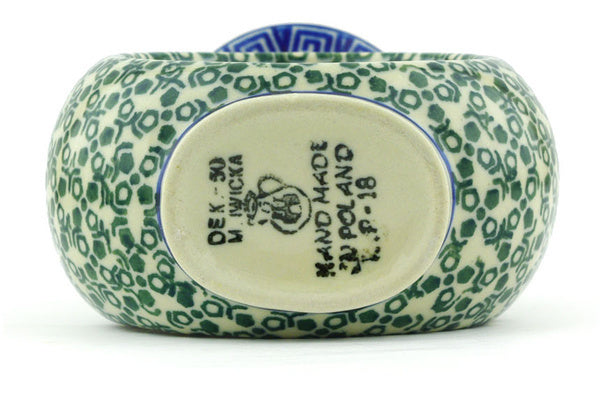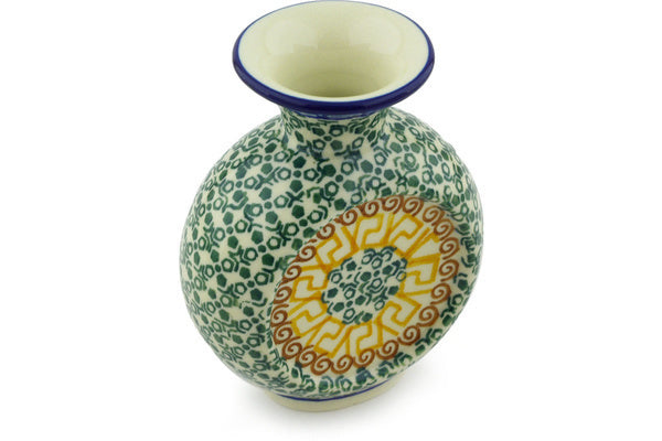This Polish pottery Vase is made by Ceramika Artystyczna workshop in Boleslawiec, Poland. Manufacturer item number H5648G. It is 4¾" high and measures 4" by 2¼". The weight of this Vase is 0.5 lbs. The pattern was designed by artist Maria Iwicka. It is part of the Grecian Sea Collection.