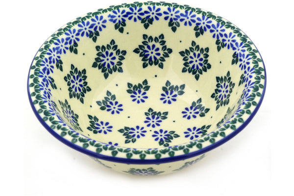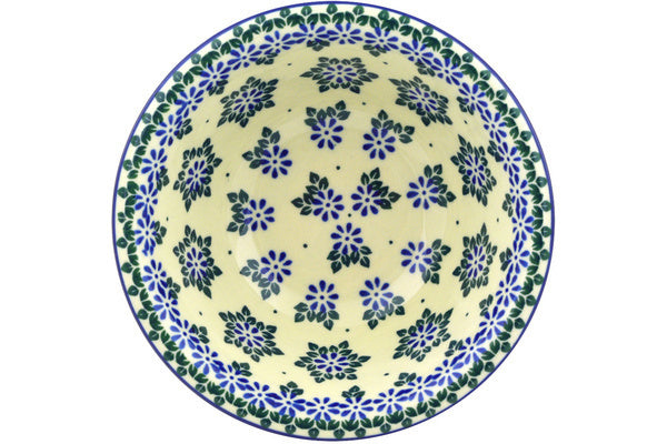 This Polish pottery Bowl is made by Ceramika Artystyczna workshop in Boleslawiec, Poland. Manufacturer item number H7753E. It is 2¼" high and measures 6" by 6". The weight of this Bowl is 0.8 lbs. The pattern was designed by artist Aneta Uber. It is part of the Starry Dandelions Collection.