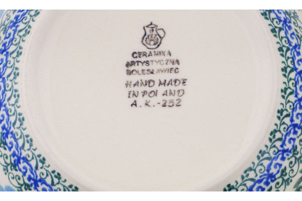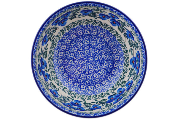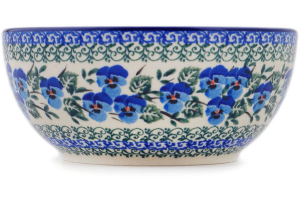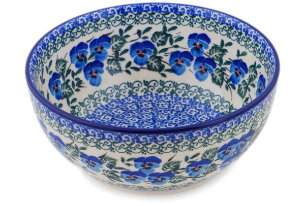 This Polish pottery Bowl is made by Ceramika Artystyczna workshop in Boleslawiec, Poland. Manufacturer item number H6179Q. It is 2¾" high and measures 6½" by 6½". The capacity of this Bowl is 27.0 oz when filled to rim and it weighs 1.3 lbs. It is part of the Blue Pansy Collection.