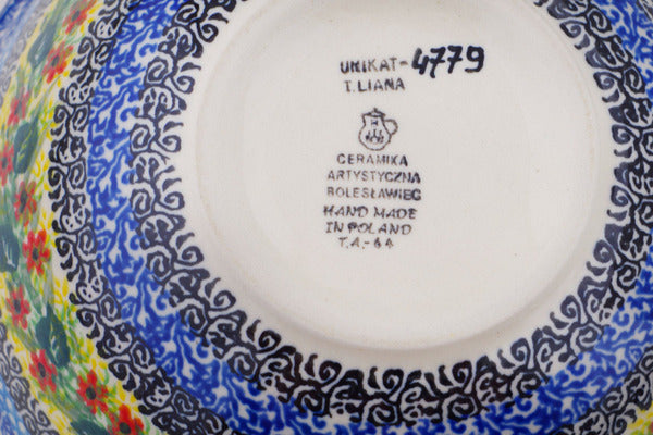 This is a Polish pottery Unikat (Signature) Bowl, which means that it has been hand painted with both sponges and brushes and it is signed by the artist who painted it. Unikat pieces are the most intricate works of art. Larger Unikat items take hours of very careful work to finish.