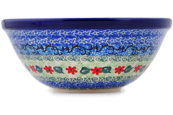 This Polish pottery Bowl is made by Ceramika Artystyczna workshop in Boleslawiec, Poland. Manufacturer item number H3791Q. It is 2¾" high and measures 6½" by 6½". The capacity of this Bowl is 24.0 oz when filled to rim and it weighs 1.2 lbs. The pattern was designed by artist Teresa Liana. It is part of the Delightful Garden House Collection.