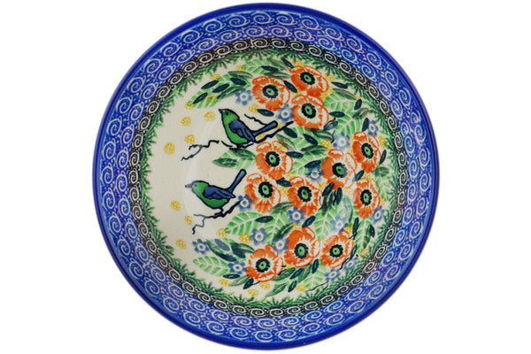 Polish Pottery 6" Bowl Green Breasted Kiskadees UNIKAT