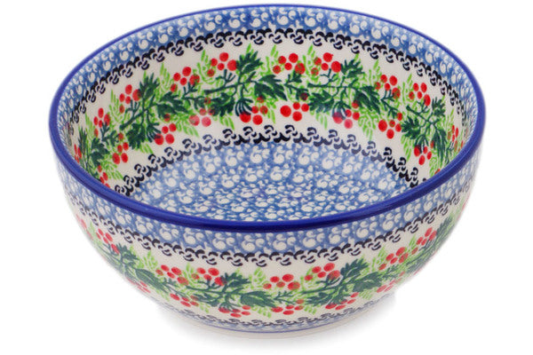 Polish Pottery 6" Bowl Holly Berry Wreath