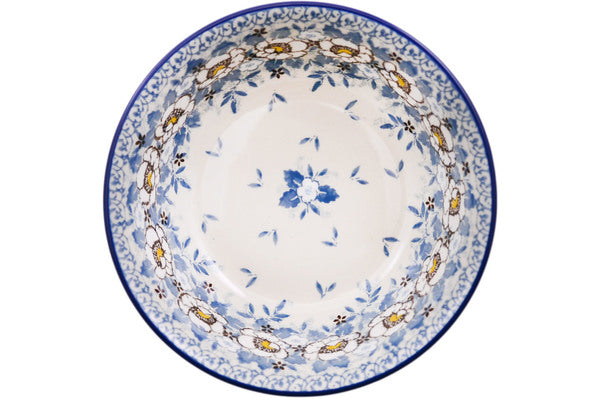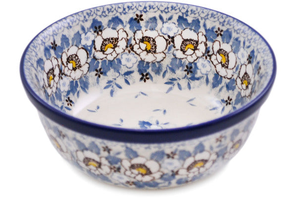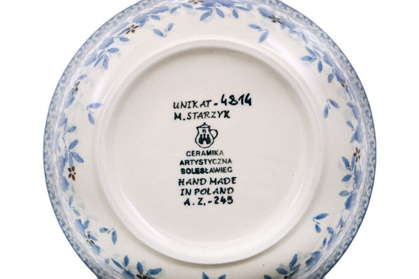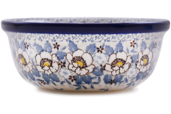 This Polish pottery Bowl is made by Ceramika Artystyczna workshop in Boleslawiec, Poland. Manufacturer item number H1718L. It is 2¾" high and measures 6¼" by 6¼". The capacity of this Bowl is 22.0 oz when filled to rim and it weighs 1.3 lbs. The pattern was designed by artist Maria Starzyk. It is part of the Pansy Parade Collection.