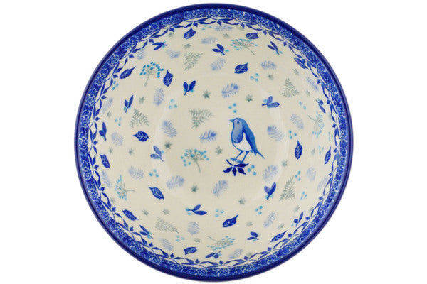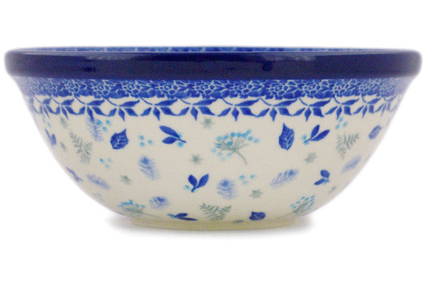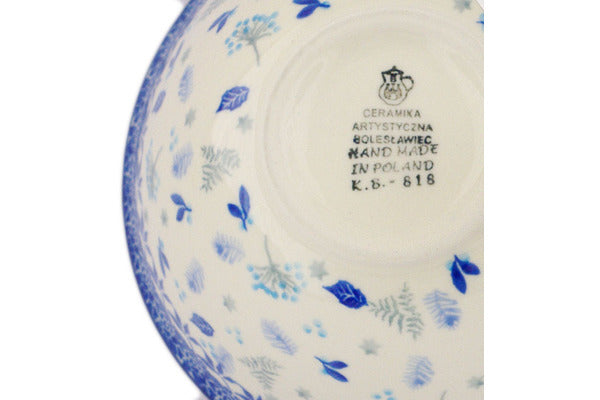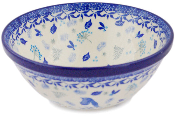 This Polish pottery Bowl is made by Ceramika Artystyczna workshop in Boleslawiec, Poland. Manufacturer item number H4096R. It is 2¾" high and measures 6½" by 6½". The capacity of this Bowl is 24.0 oz when filled to rim and it weighs 1.2 lbs. The pattern was designed by artist Starzyk. It is part of the Patient Bluebird Collection.