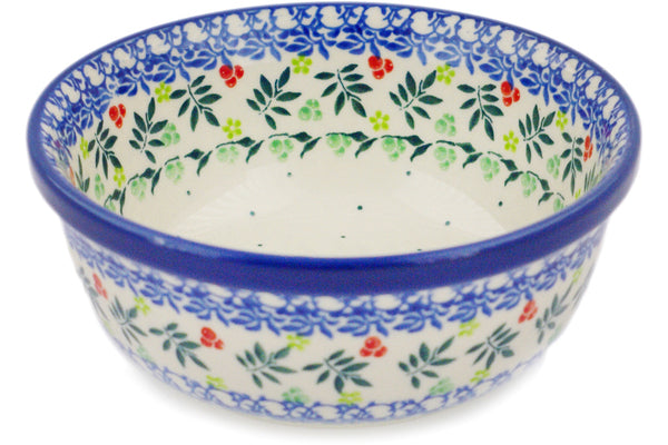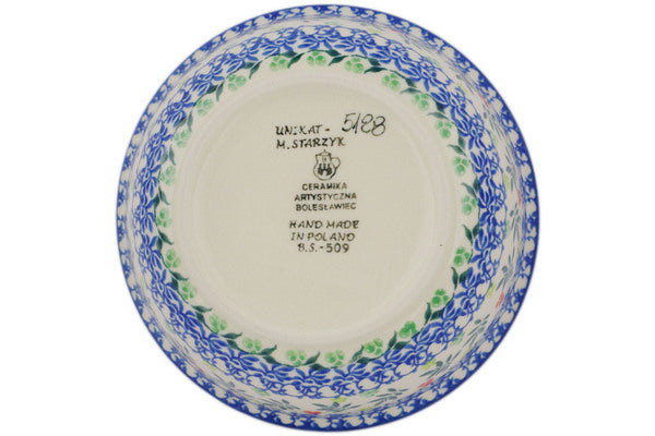 This Polish pottery Bowl is made by Ceramika Artystyczna workshop in Boleslawiec, Poland. Manufacturer item number H1681R. It is 2¾" high and measures 6¼" by 6¼". The capacity of this Bowl is 22.0 oz when filled to rim and it weighs 1.3 lbs. It is part of the Robin & Wren Collection.