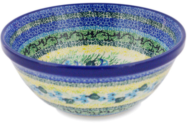 This Polish pottery Bowl is made by Ceramika Artystyczna workshop in Boleslawiec, Poland. Manufacturer item number H8103Q. It is 2¾" high and measures 6½" by 6½". The capacity of this Bowl is 24.0 oz when filled to rim and it weighs 1.2 lbs. The pattern was designed by artist Teresa Liana. It is part of the Splendid Mariposa Collection.