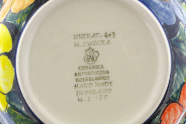 This is a Polish pottery Unikat (Signature) Bowl, which means that it has been hand painted with both sponges and brushes and it is signed by the artist who painted it. Unikat pieces are the most intricate works of art. Larger Unikat items take hours of very careful work to finish.