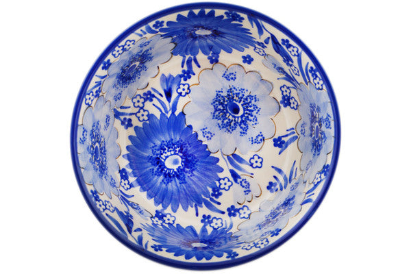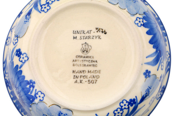This Polish pottery Bowl is made by Ceramika Artystyczna workshop in Boleslawiec, Poland. Manufacturer item number H3481Q. It is 2¾" high and measures 6¼" by 6¼". The capacity of this Bowl is 22.0 oz when filled to rim and it weighs 1.3 lbs. It is part of the Flowers In The Sky Collection.